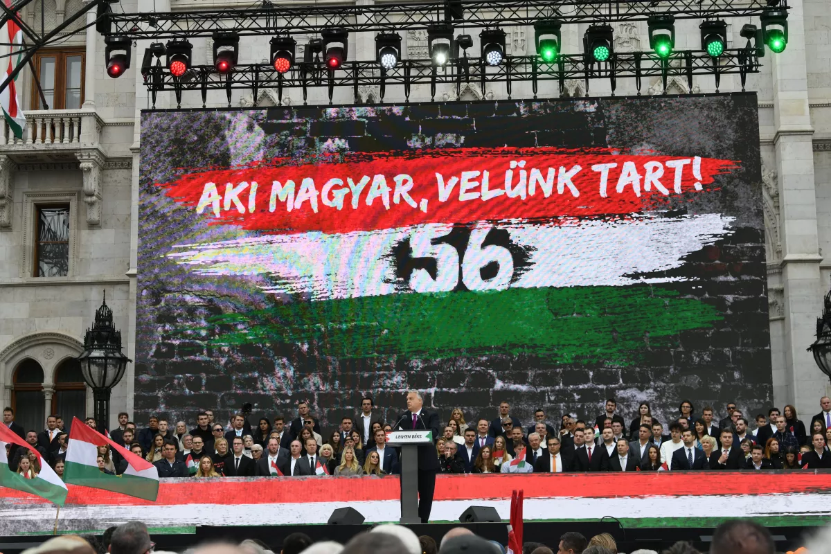 „Данас показујемо свету да Мађарска не заборавља своје хероје и да је увек способна да створи нове“, изјавио је премијер у говору 23. октобра. Виктор Орбан је, обраћајући се маси окупљеној на Кошутовом тргу, посебно поздравио учеснике „Марша за мир“ (Békemenet), за који је рекао да је можда највећи патриотски покрет у Европи – покрет који је умео да одбрани своју домовину од либералног духа времена и бриселских угњетача.
